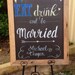 90 x 60 cm unframed Eat, Drink and Be Married Personalized chalkboard sign. Names and colours can be changed to suit. THIS SIGN DOES NOT COME FRAMED. STAND NOT INCLUDED.