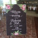 60 X 90 cm 3mm chalkboard sign with hand written chalk art and lettering. Names and dates can be changed to suit. All signs are sprayed so they won't smudge. The stand is not included in the price. Ideal for display at a wedding ceremony or reception.